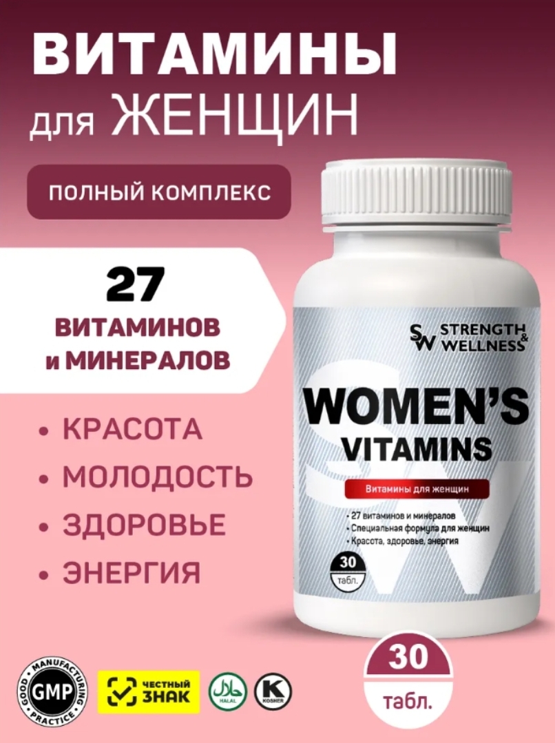 Комплекс Women's Vitamins создан специально для женщин — для красоты, молодости, энергии и здоровья. Содержит 27 витаминов и минералов для полноценной поддержки организма каждый день.